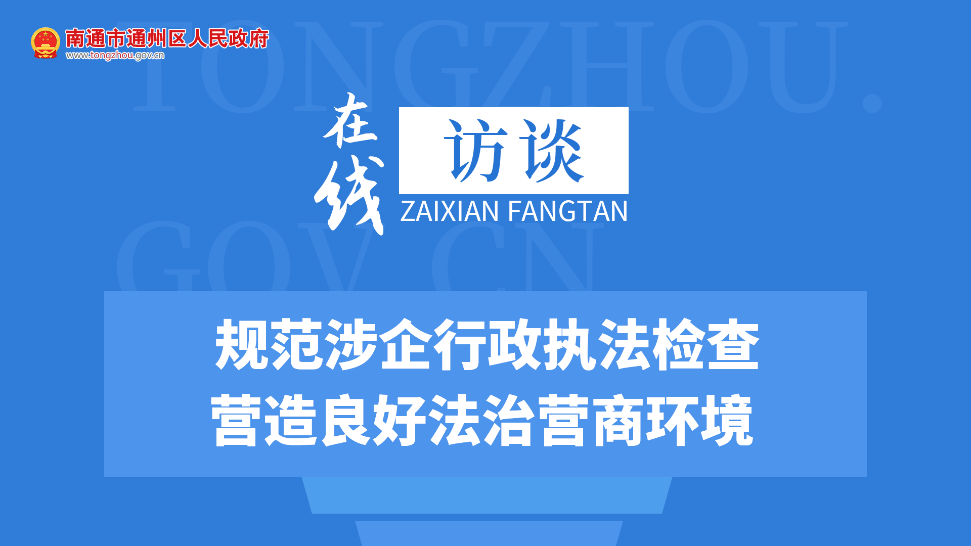 嚴(yán)格規(guī)范涉企行政檢查,是提高依法行政水平、優(yōu)化營商環(huán)境、穩(wěn)定市場預(yù)期的重要一環(huán)。本期節(jié)目,我們邀請(qǐng)到區(qū)司法局副局長張強(qiáng)走進(jìn)在線訪談欄目,就規(guī)范涉企行政執(zhí)法檢查方面與大家互動(dòng)交流。歡迎各位網(wǎng)友積極提問,踴躍參與。
